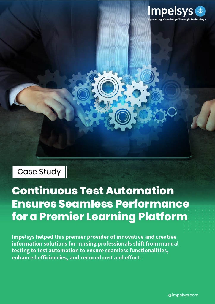 Impelsys’ Software QE team implemented the Testing Automation framework to run repetitive tests for increasing the depth and scope of tests across the platform.