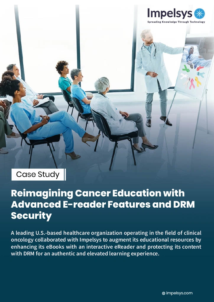 The client is a prominent U.S.-based nonprofit organization in clinical oncology dedicated to equipping healthcare professionals with cutting-edge resources. The organization aimed to offer interactive eBooks enriched with multimedia elements and assistive eReader features, prioritizing content security and integrating robust Digital Rights Management (DRM) measures.